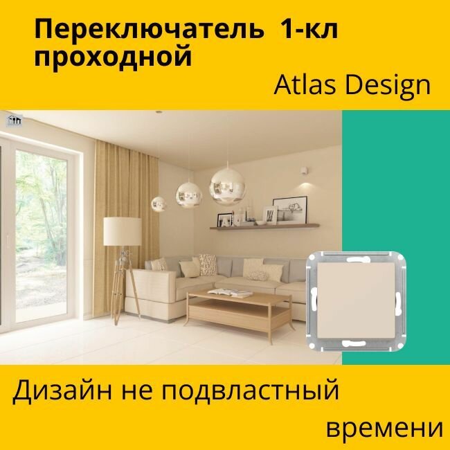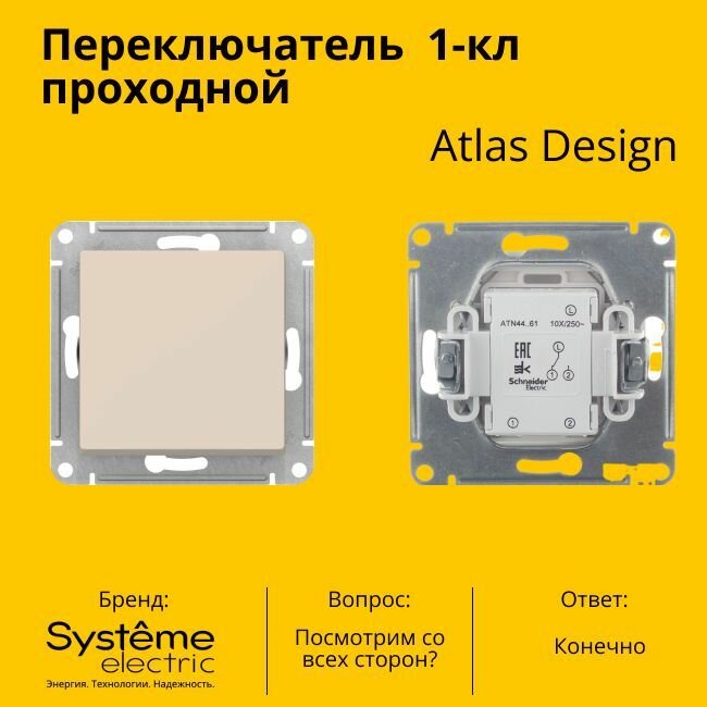 Переключатель проходной Systeme Electric Atlas Design 1-клавишный, 10А, 10 AX, Бежевый - 2 шт. информация: