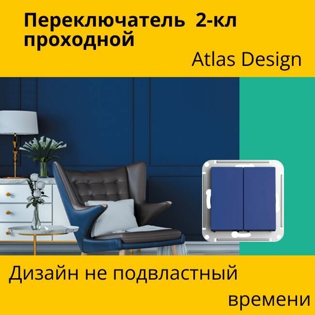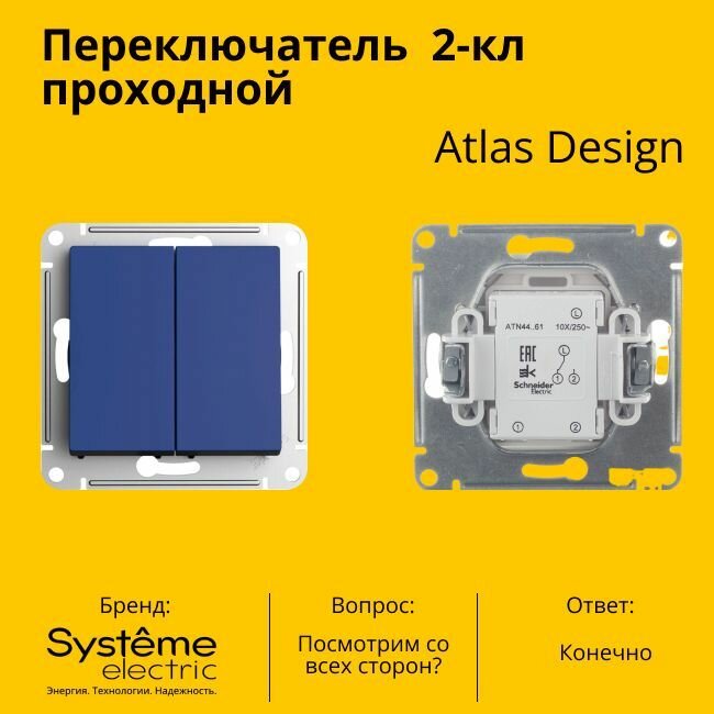 Переключатель проходной Systeme Electric Atlas Design 2-клавишный, 10А, 10 AX, Аквамарин - 4 шт. информация: