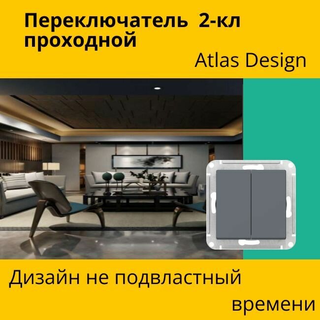 Переключатель проходной Systeme Electric Atlas Design 2-клавишный, 10А, 10 AX, Грифель - 5 шт. информация: