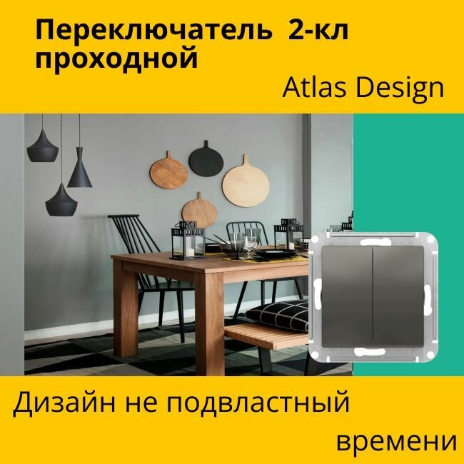 Переключатель 2-кл. 10А, грифель ATLAS DESIGN