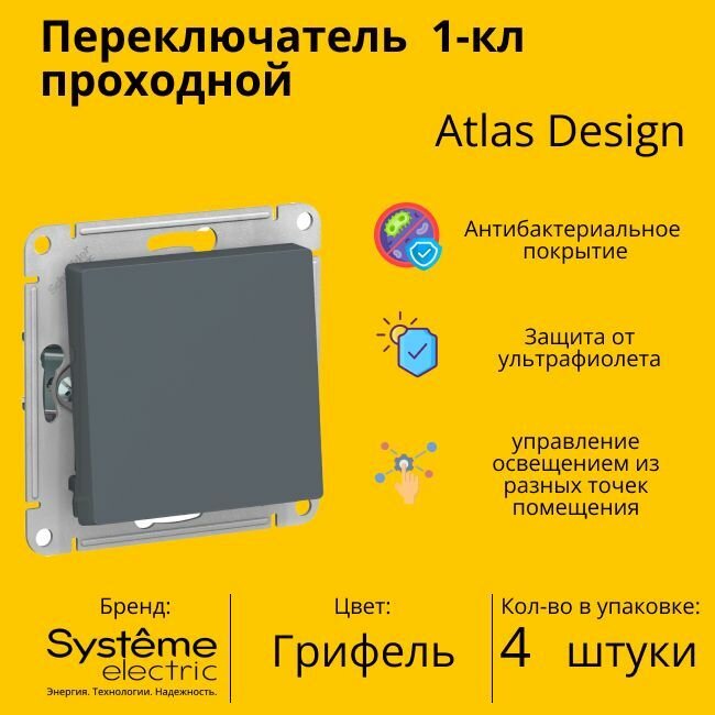 Отзывы на Механизм переключателя 1-кл. СП AtlasDesign 10А IP20 (сх. 6) 10AX грифель SchE ATN000761 (4шт.в упак.)