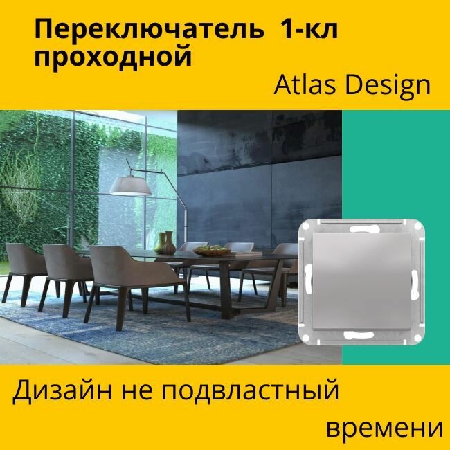 Переключатель проходной Systeme Electric Atlas Design 1-клавишный, 10А, 10 AX, Алюминий - 10 шт. информация: