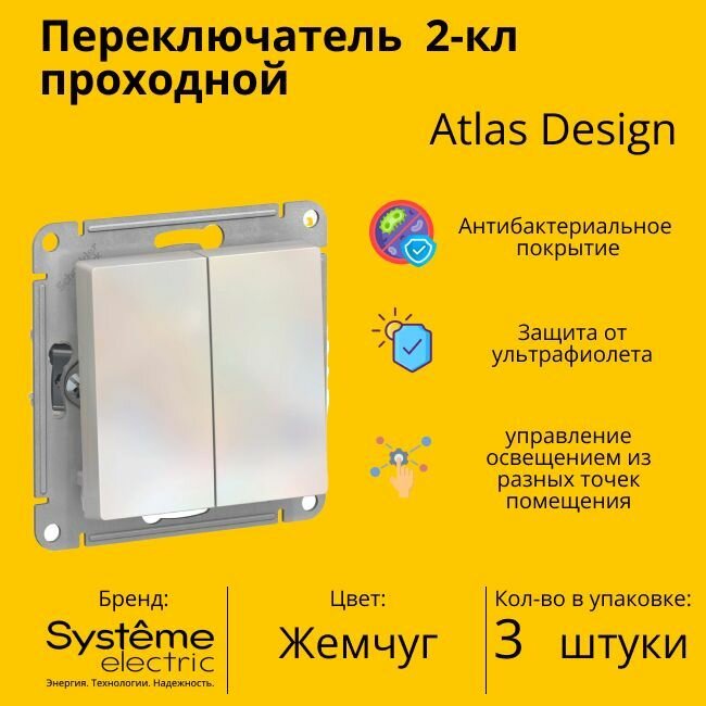 Переключатель 2-клавишный ATLASDESIGN, скрытый монтаж, жемчуг. ATN000465 Schneider Electric (3шт.) информация: