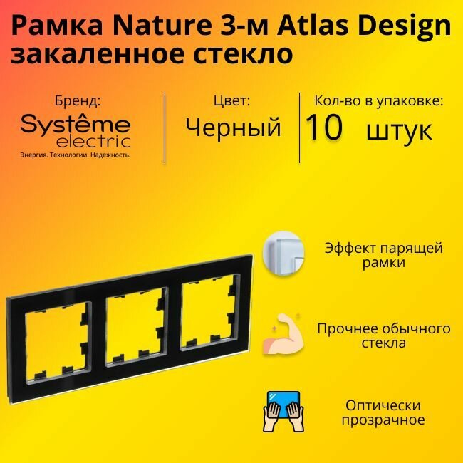 10 цен на Рамка тройная Systeme Electric Atlas Design Nature закаленное стекло черный глянец ATN321003 - 10 шт.