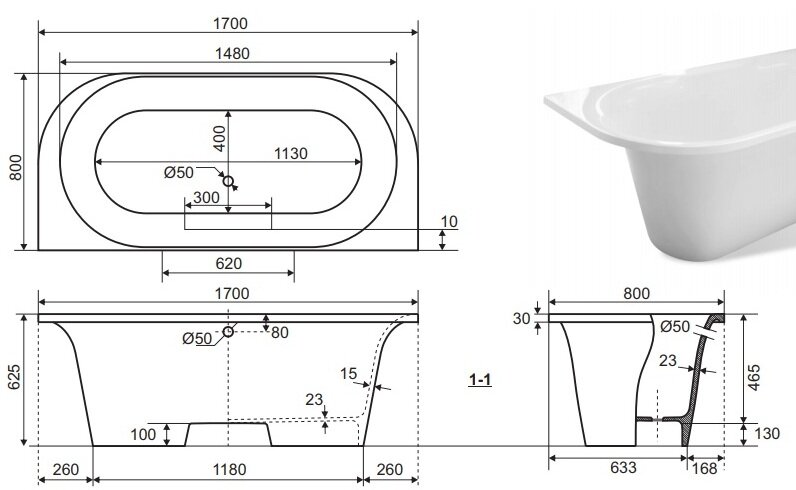 | Дополнительная информация | Диаметр слива 50 мм. |