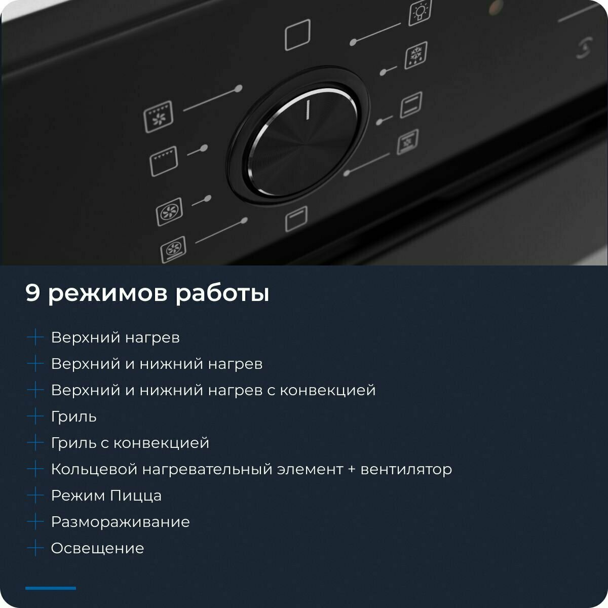 Духовой шкаф электрический ZUGEL ZOE602B, объем 75 л, 9 режимов работы, таймер, сенсорное управление, дисплей, черный 45 090 ₽