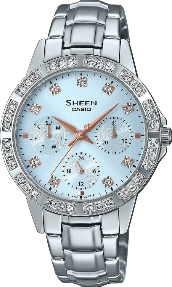 Наручные часы CASIO Sheen SHE-3517D-2A, женские, сапфировое стекло, WR50, серебристый, голубой