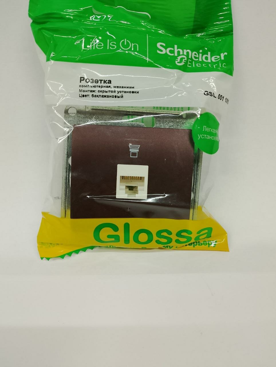 Отзывы на Розетка компьютерная 1-м Glossa RJ45 кат.5E механизм баклажан. GSL001181K Schneider Electric