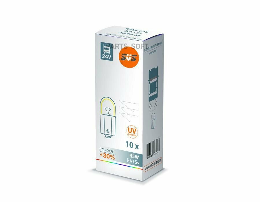 SVS 0200073000 Лампа накаливания сигнальная R5W BA15s 3200K Standart +30% 24V 5W картон 10шт цена за 1шт информация: