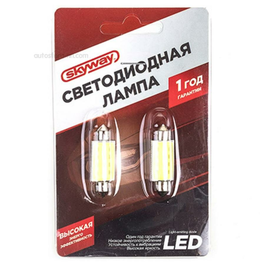 Отзывы на SKYWAY S08201349 Лампа автомобильная светодиодная T11(C5W) 12V 1 COB Блистер с цоколем 1-конт Белая компл. 2 ; SKYWAY