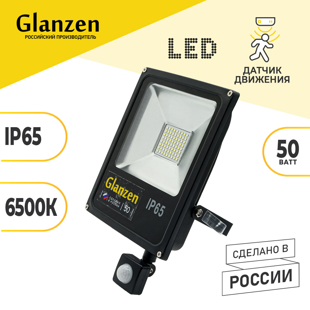 10 цен на Прожектор светодиодный 50Вт, IP65 с датчиком движения GLANZEN
