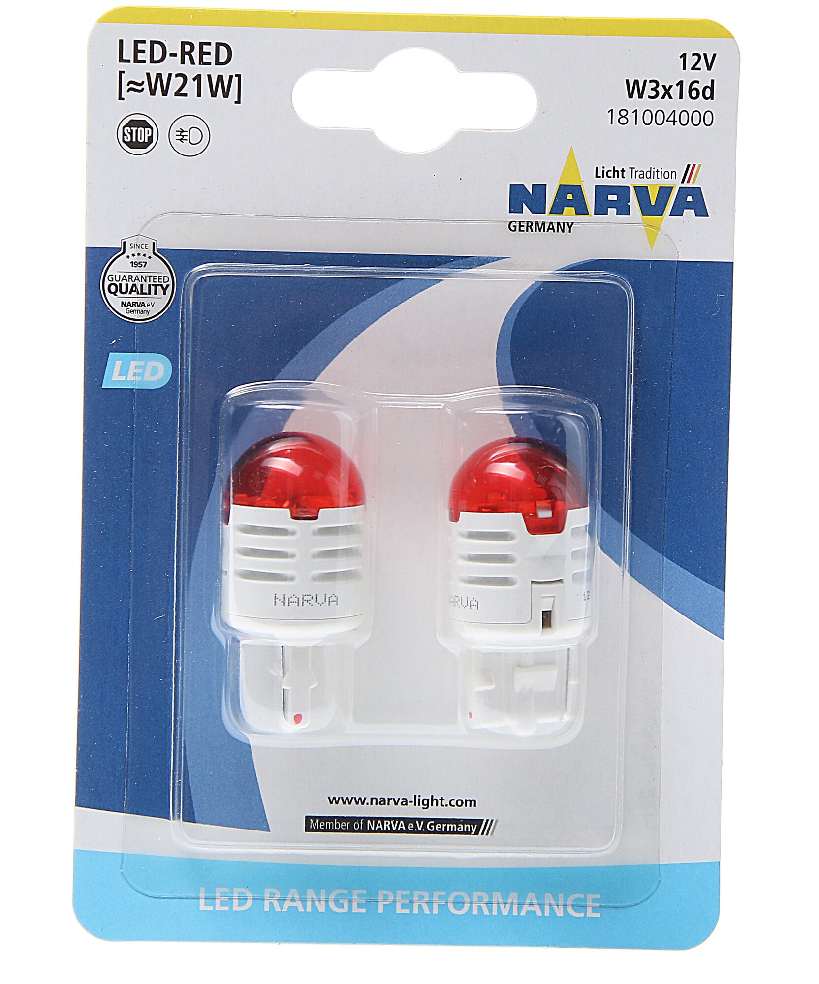 NARVA 181004000 Лампа LED W21W 12V 1,75W W3x16d red (блистер 2шт.) информация: