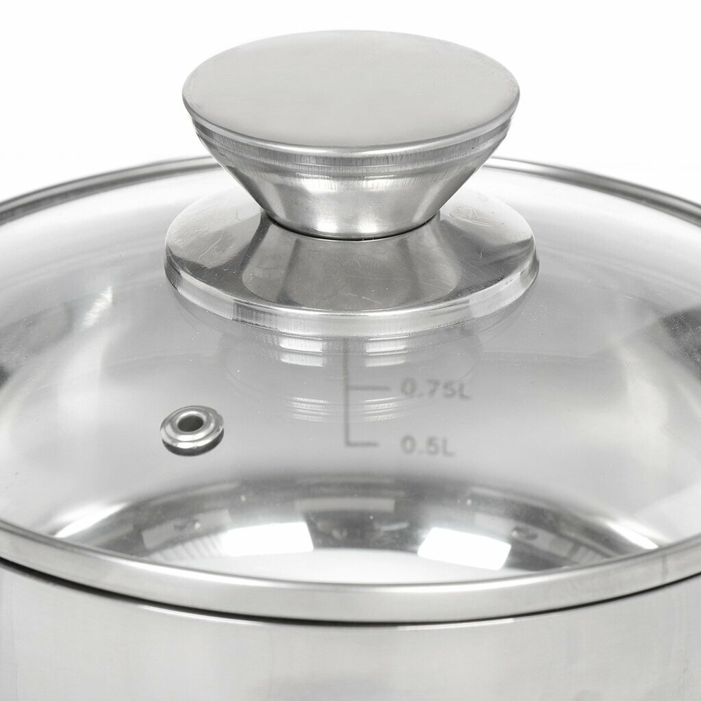 Ковш нержавеющая сталь, 0.8 л, крышка стекло, металлическая ручка, индукция, Daniks, GS-01311-12SP