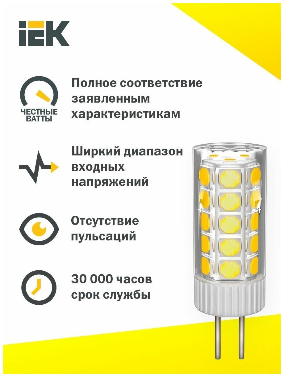 Лампа светодиодная CORN 3Вт капсула 3000К G4 12В керамика LLE-CORN-3-012-30-G4 IEK информация: