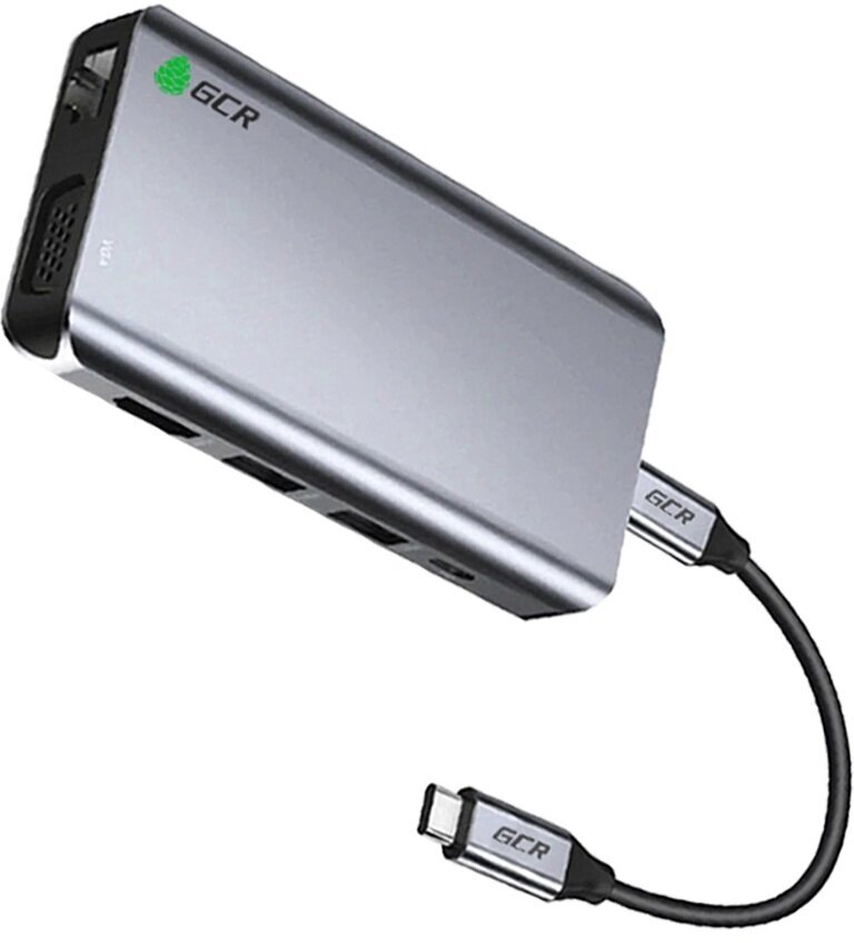 GCR USB Хаб TypeC 10 в1 -> входы HDMI + VGA + RJ45 + USB3.0 x3 + Card Reader + Audio + TypeC PD