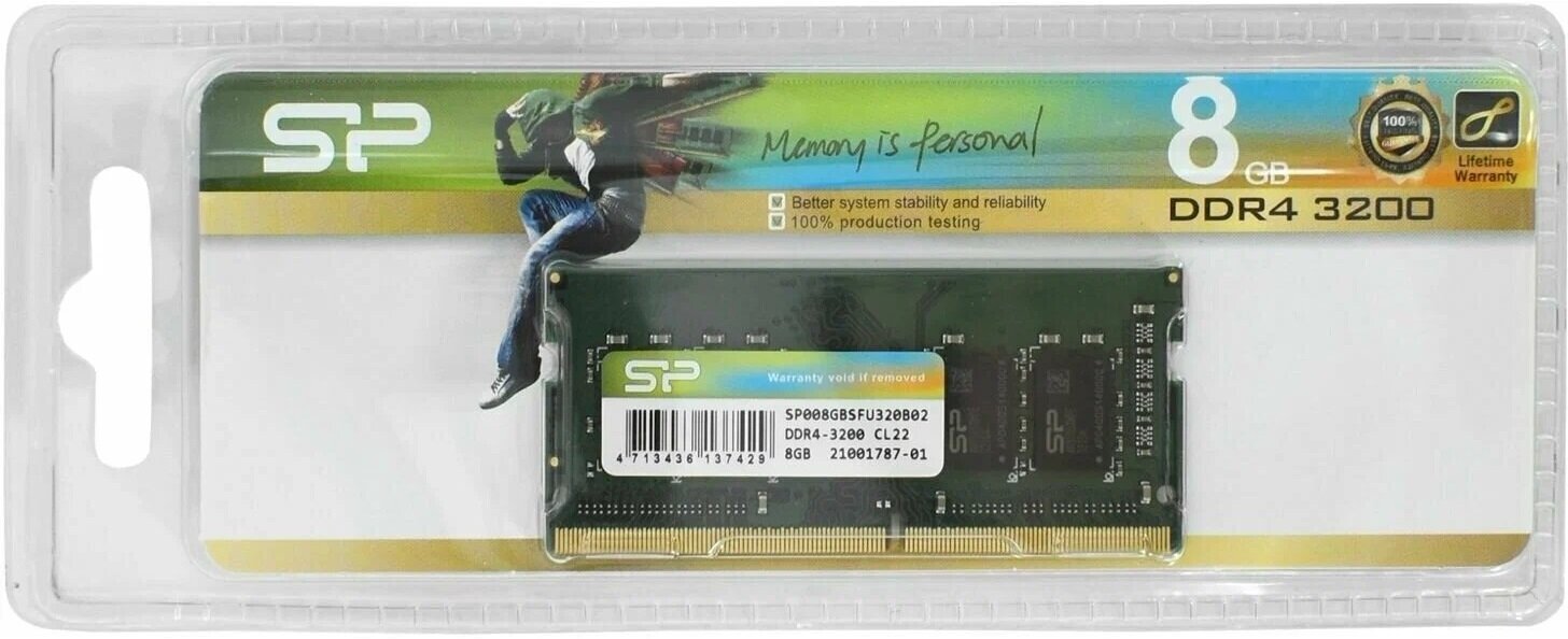 Оперативная память Silicon Power SP008GBSFU320B02 DDR4 - 8ГБ 3200МГц, для ноутбуков (SO-DIMM), Ret информация: