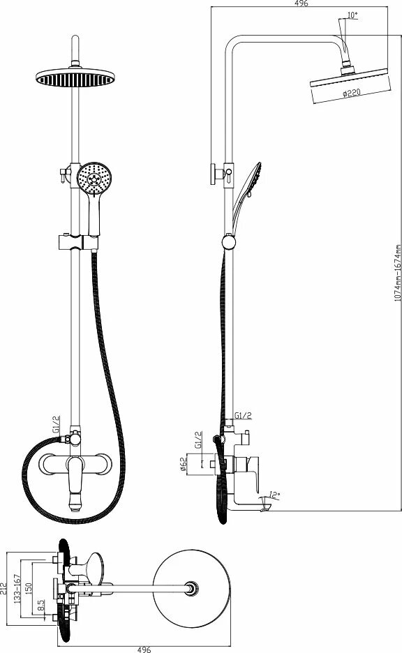 Душевая система AM.PM Sunny, со смесителем, верхний душ, ручной душ, хром