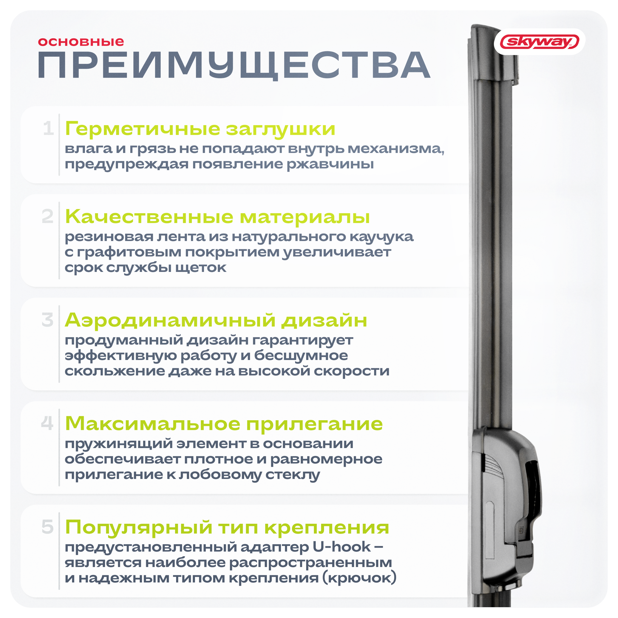 Щетка стеклоочистителя бескаркасная SKYWAY 530 мм, крючок (Hook) S02704010 213 ₽