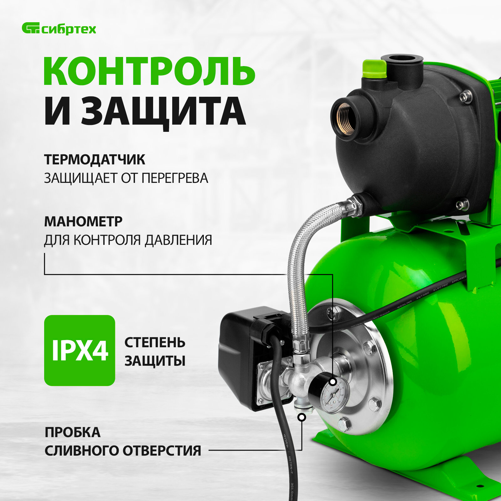 10 цен на Насосная станция НС650-П, 650 Вт, напор 37 м, 3200 л/ч, ресивер 19 л, Сибртех, 97247