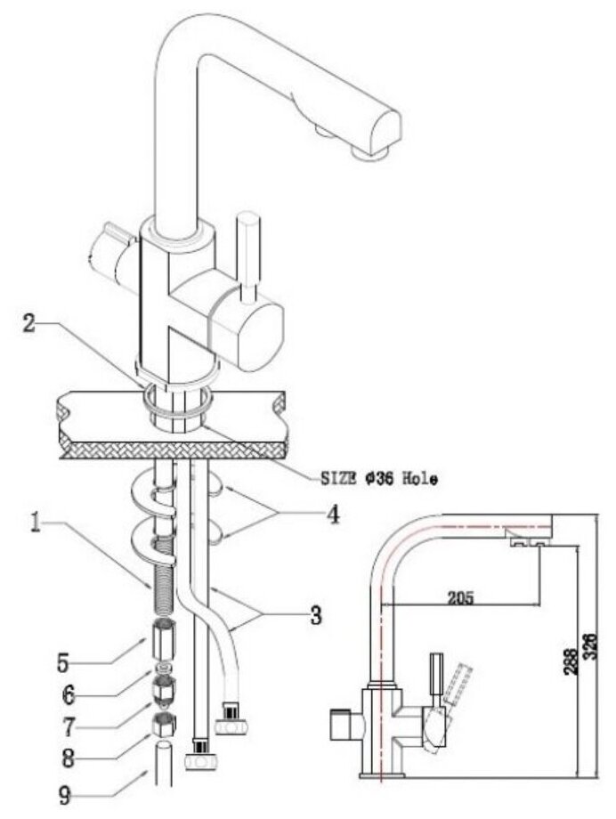 Смеситель для кухни с подключением к фильтру с питьевой водой из нержавеющей стали SUS304 Calorie CAL50116-3