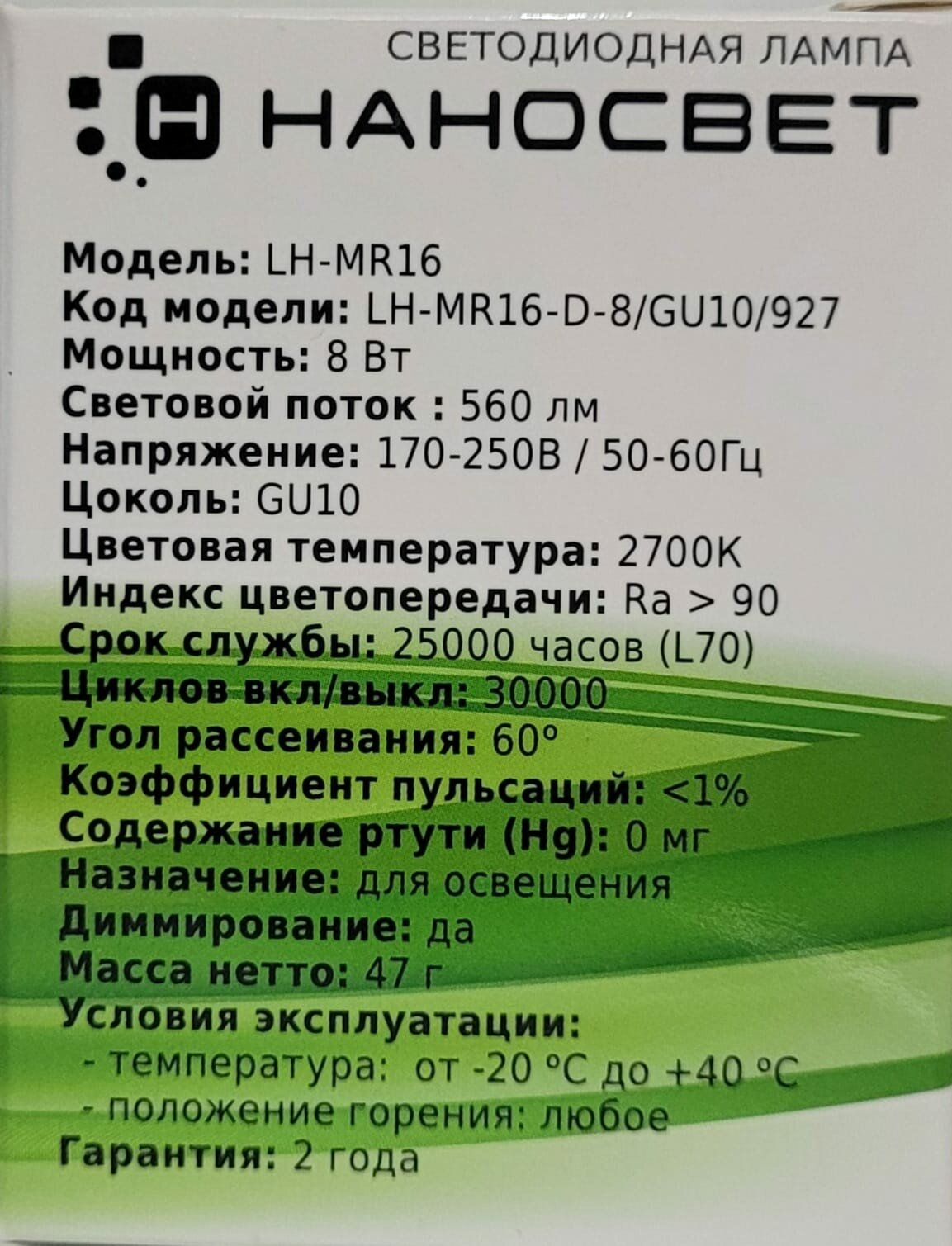Отзывы на Лампа светодиодная диммируемая Наносвет GU10 8W 2700K прозрачная LH-MR16-D-8/GU10/827 L242