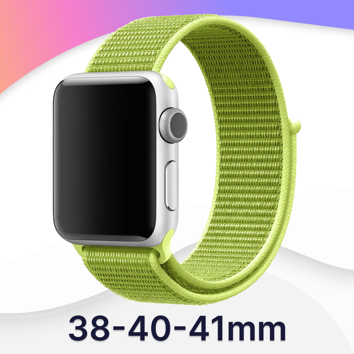 Нейлоновый ремешок для часов Apple Watch 38-40-41 mm, Series 1-9, SE / Тканевый фитнес браслет на липучке Эпл Вотч 38-40-41 мм (Лайм) 423 ₽