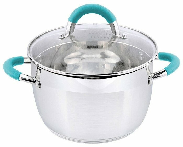 Кастрюля Bravo с дуршлагом, стеклянная крышка нержавеющая сталь 5,1л (22*13,5см)