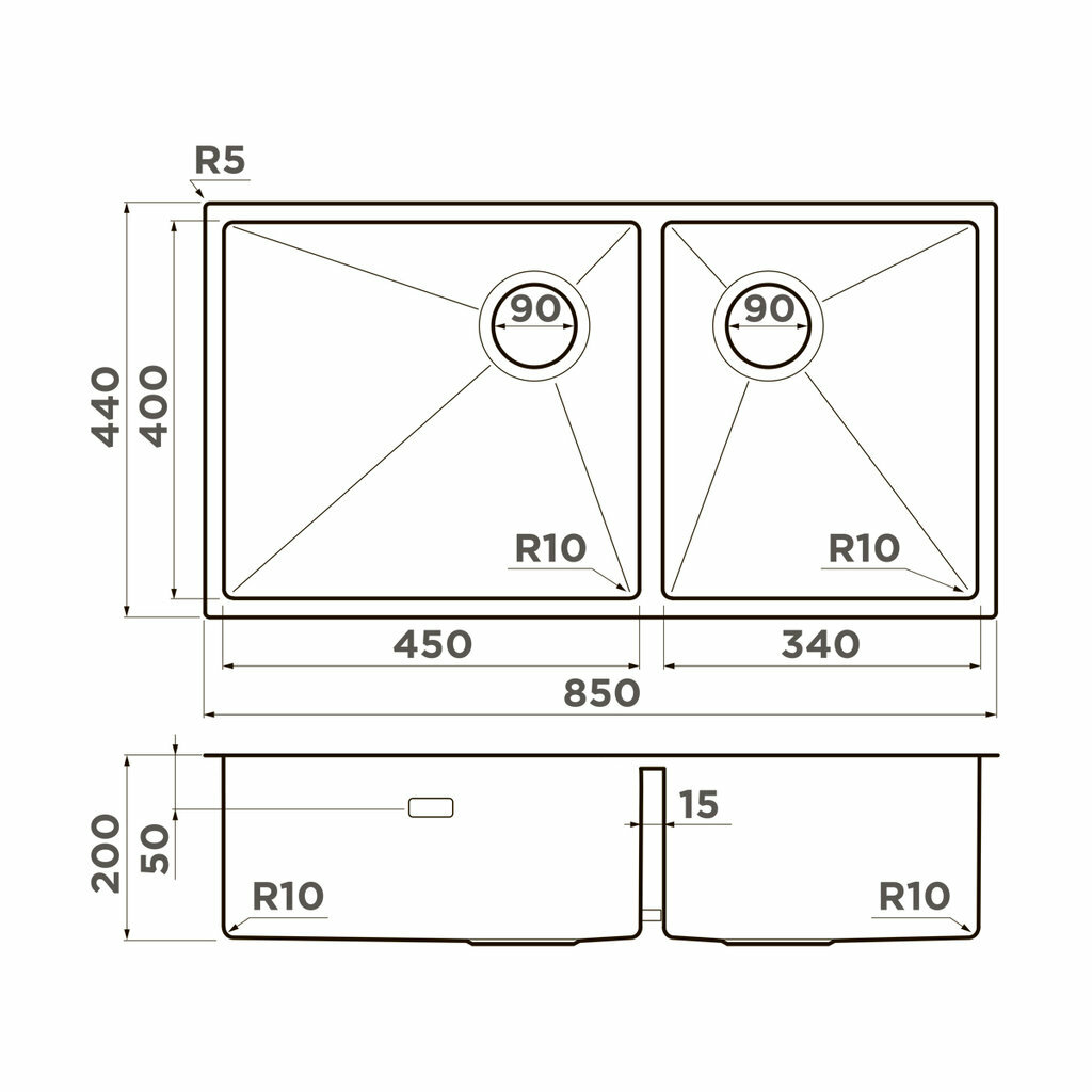 Мойка FABIA 62322L сатин врезная 78х48 см левая + большой сифон с переливом