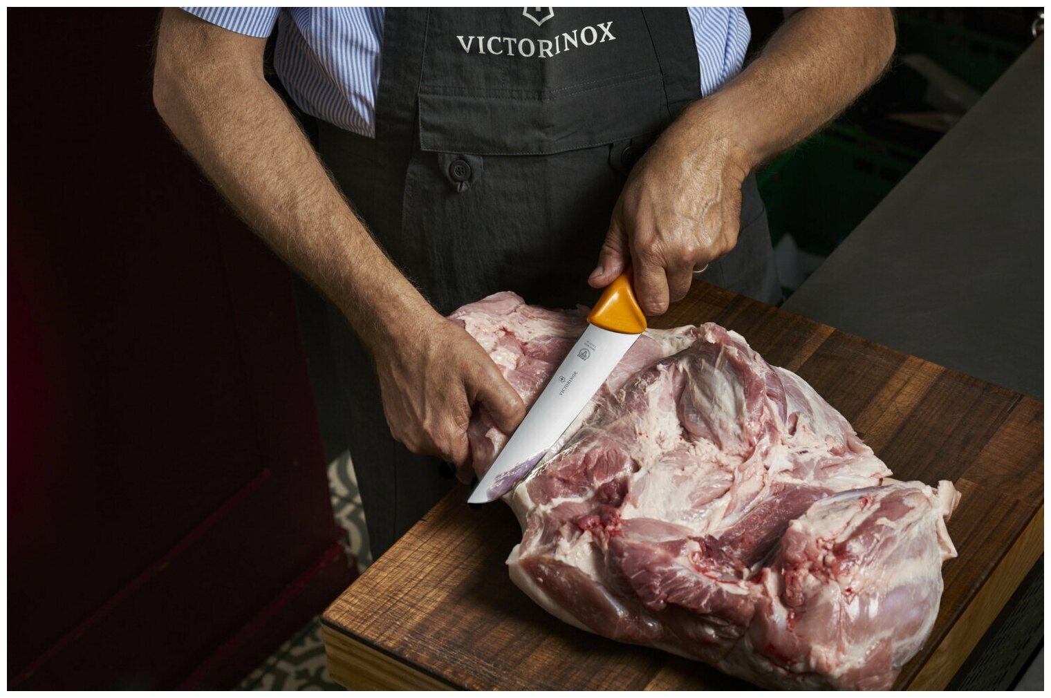 Отзывы на Нож кухонный Victorinox Swibo, разделочный, для мяса, 220мм, заточка прямая, стальной, оранжевый [5.8411.22]