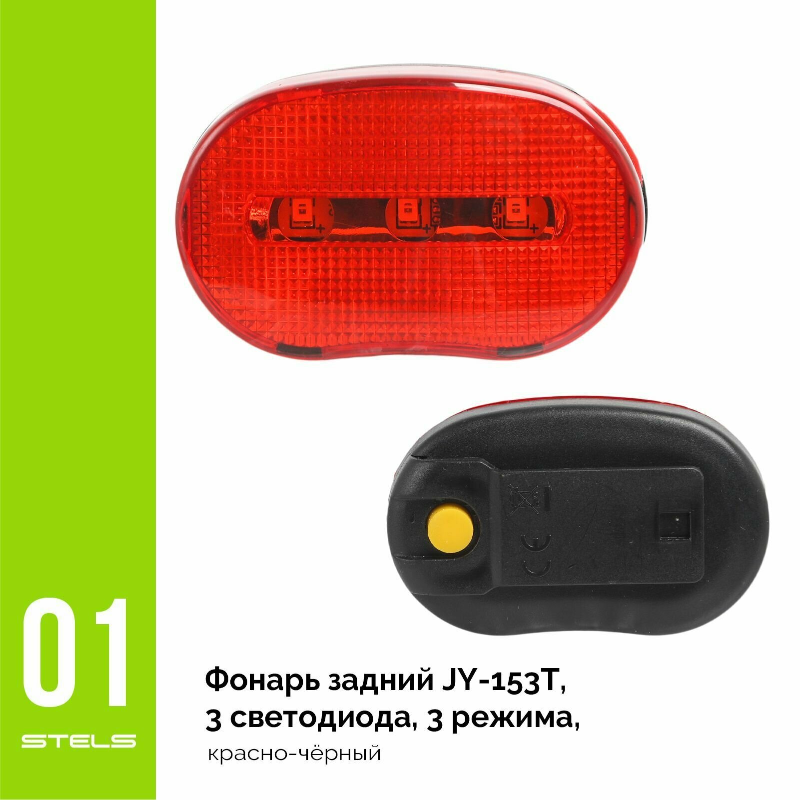 Фонарь велосипедный задний STELS JY-153T, 3 светодиода, 3 режима, красно-чёрный NEW информация: