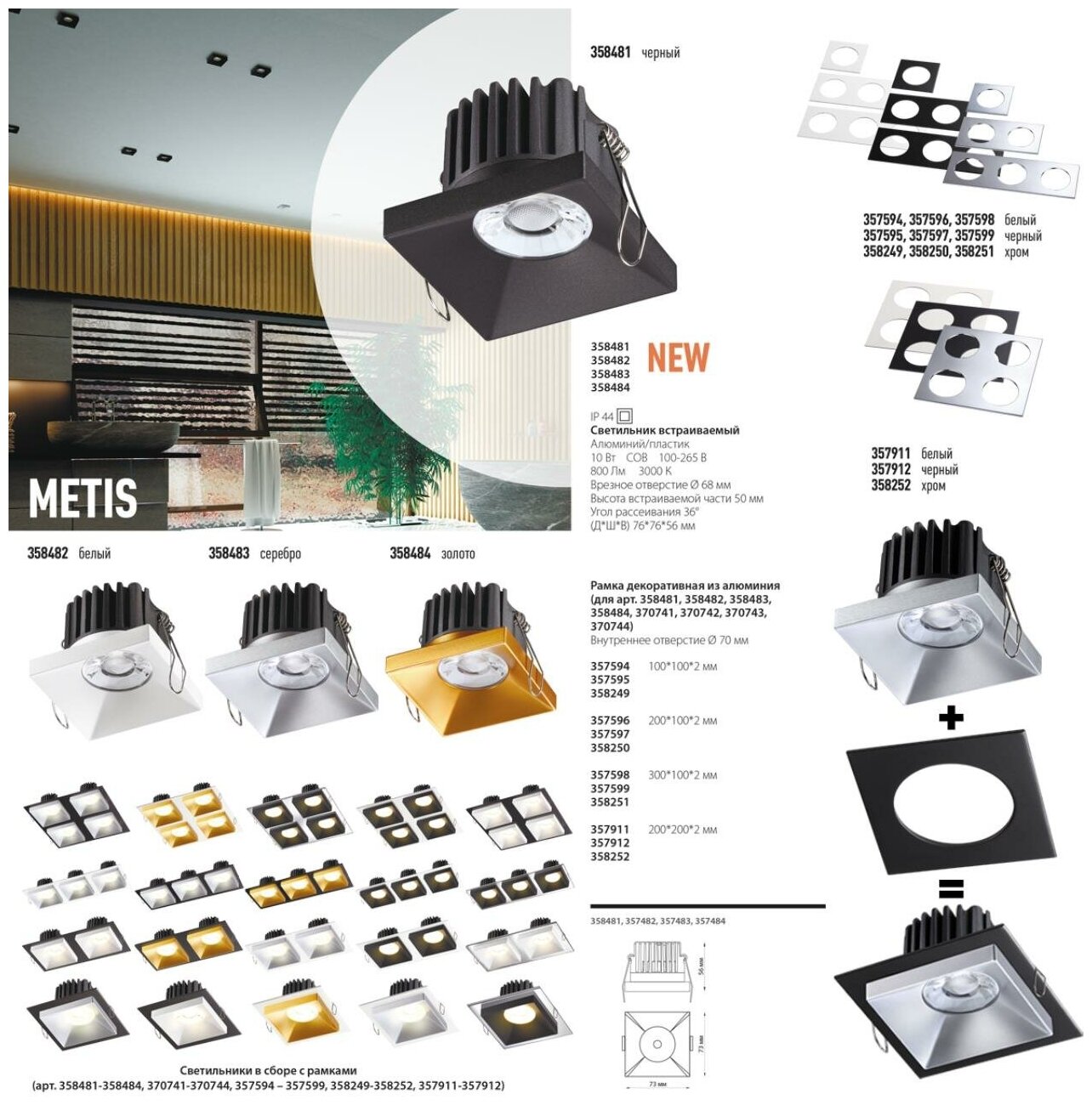 Отзывы на Встраиваемый светильник светодиодный IP44 Novotech Metis 358481
