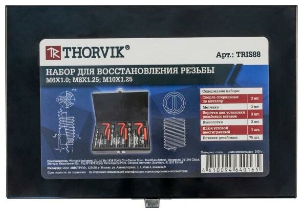 Thorvik TRIS88 Набор для восстановления резьбы M6-M10, 88 предметов информация: