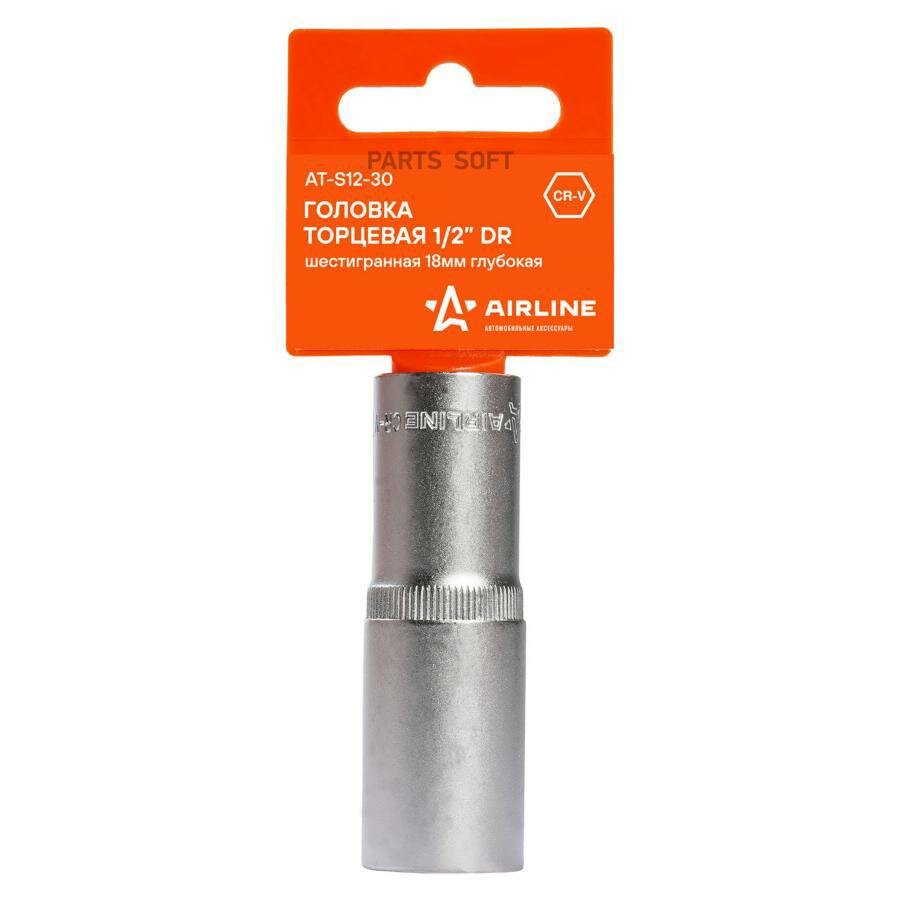 Головка торцевая 12 DR шестигранная 18мм глубокая (AT-S12-30), AIRLINE ATS1230 (1 шт.)