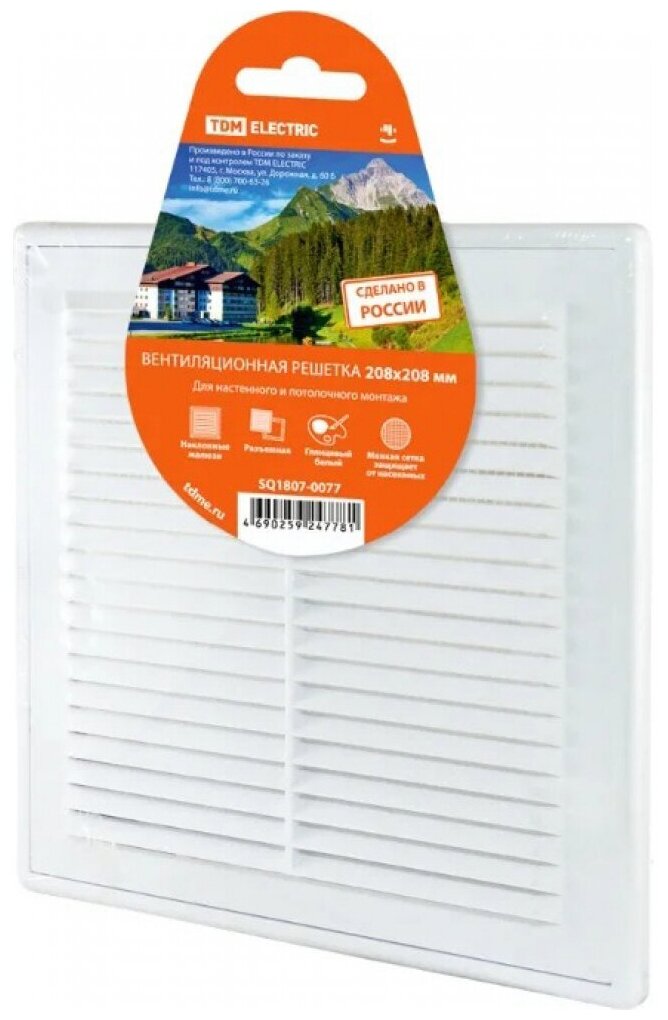 Вентиляционная решетка TDM Electric, с москитной сеткой, 208х208 мм, белая, 1 шт.