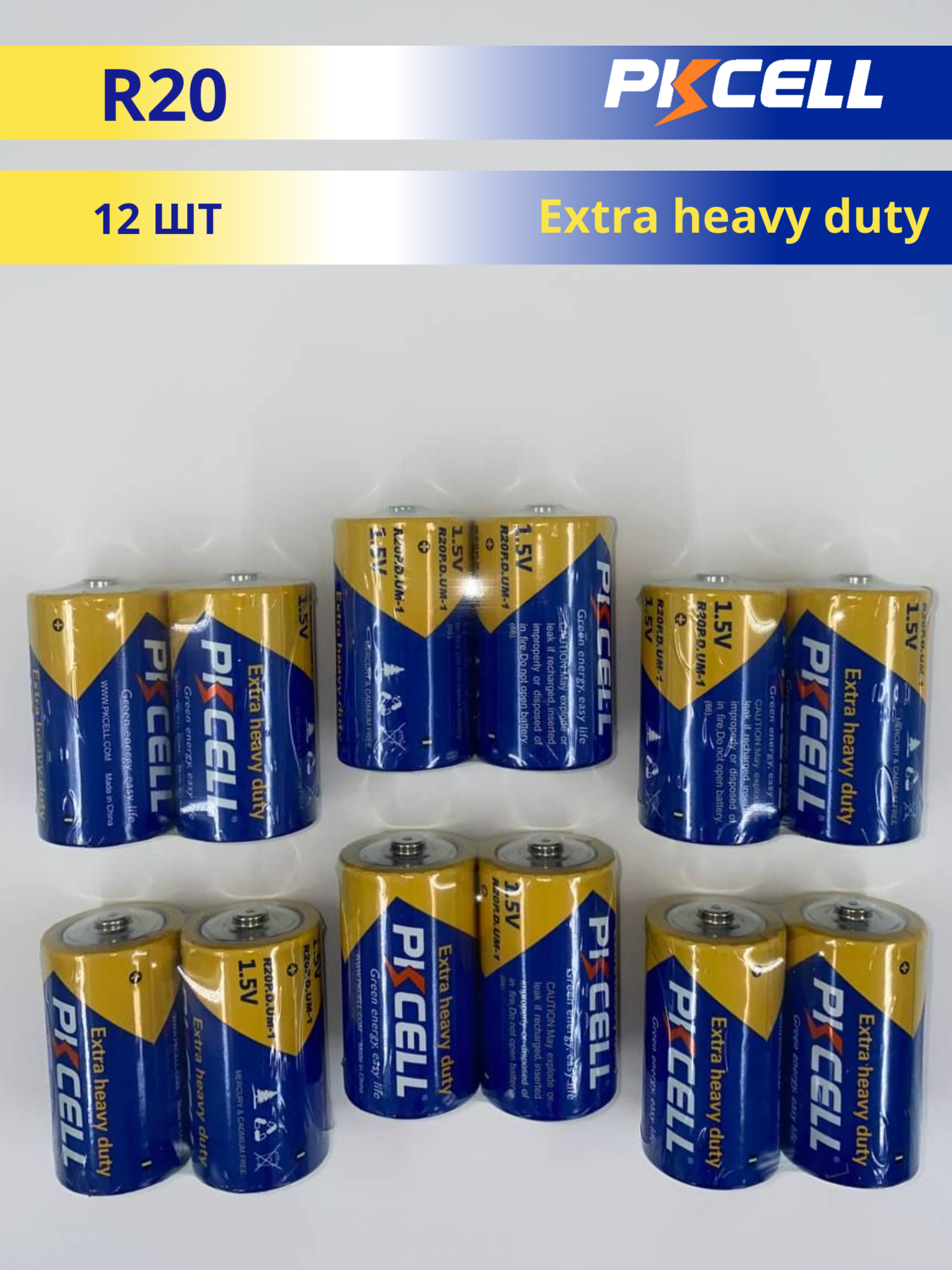 Батарейки PKCELL D солевые (12 штук) информация: