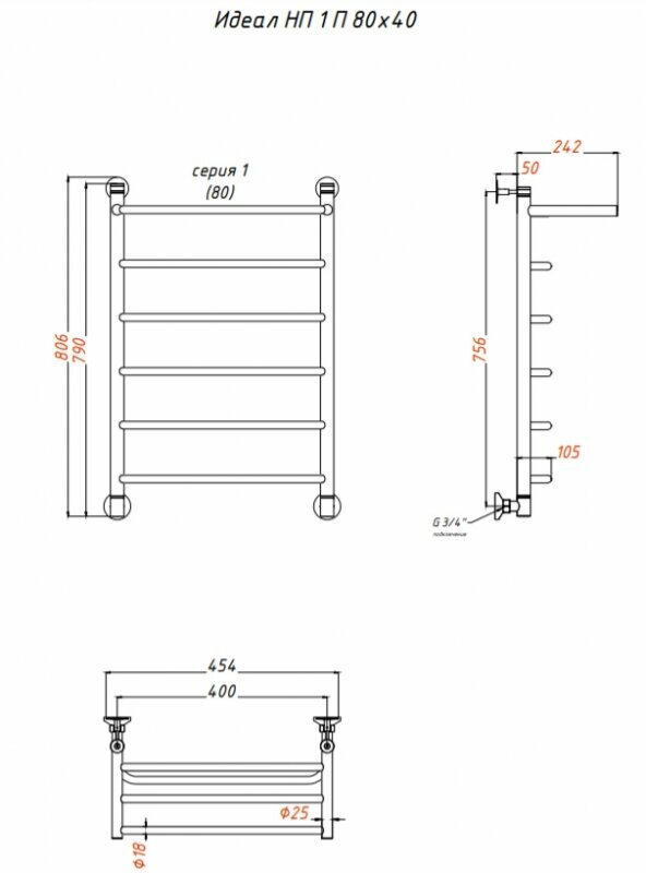 Водяной полотенцесушитель Тругор Идеал 1 П НП 80x40 с полкой Хром информация: