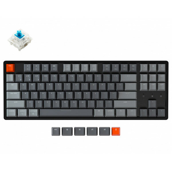 Беспроводная механическая клавиатура Keychron K8, TKL, алюминиевый корпус, RGB подсветка, Gateron Blue Switch