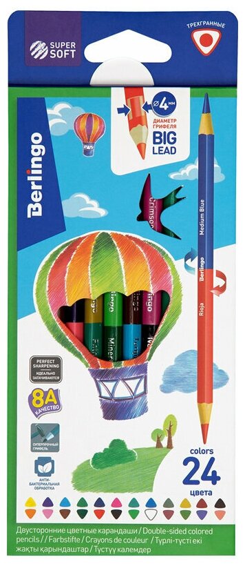 SSD0124 Карандаши цветные двусторонние Berlingo "SuperSoft. Duo", 24цв, 12шт, трехгр., заточ., европ. информация: