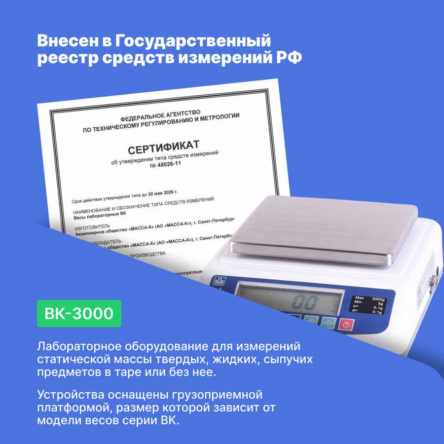Лабораторные весы МАССА-К ВК-3000 информация: