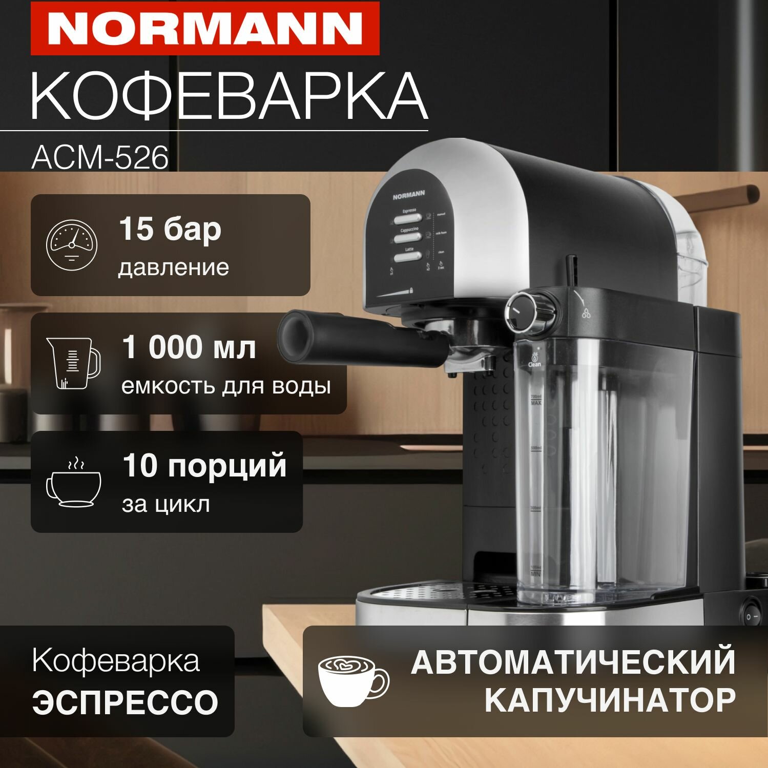 10 цен на Кофеварка рожковая электрическая ACM-526 NORMANN