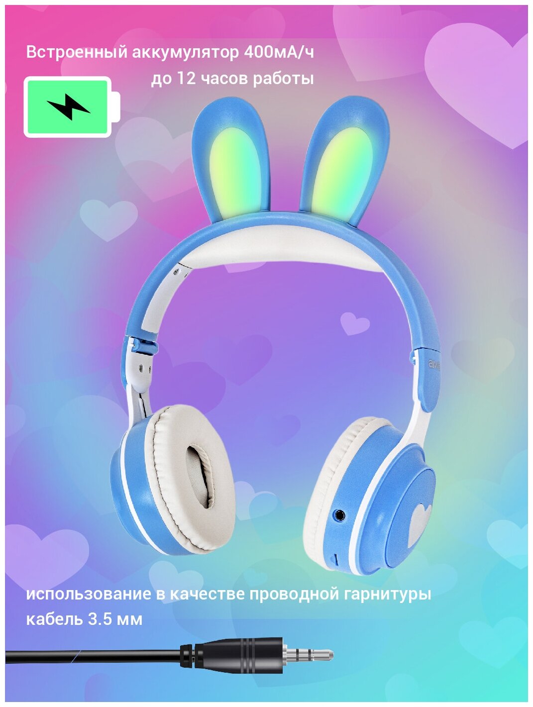 Беспроводные наушники AIWA с подсветкой, складные, детские, с ушками, Bluetooth 5.0, работа до 12 часов, микрофон, аудиовход, разъем для карт