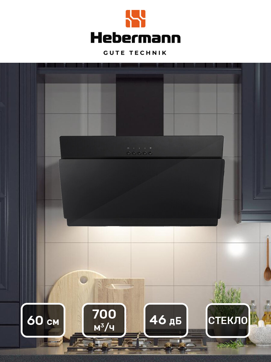 Кухонная вытяжка наклонная Hebermann HBKH 60.3 B информация: