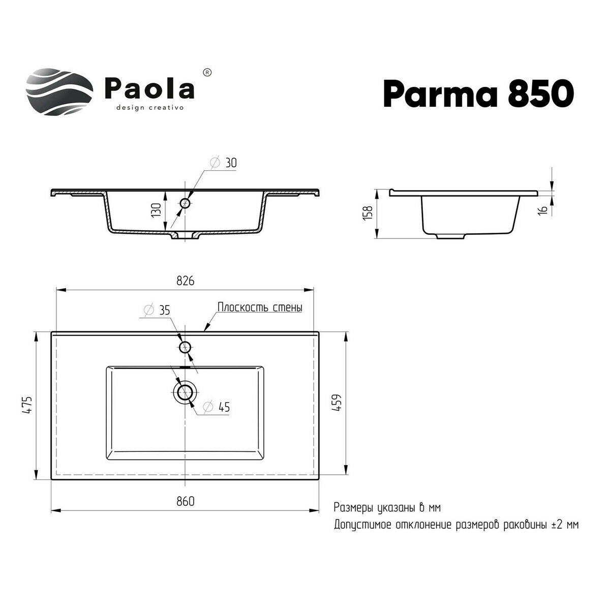 Раковина для ванной Paola Parma 850 информация: