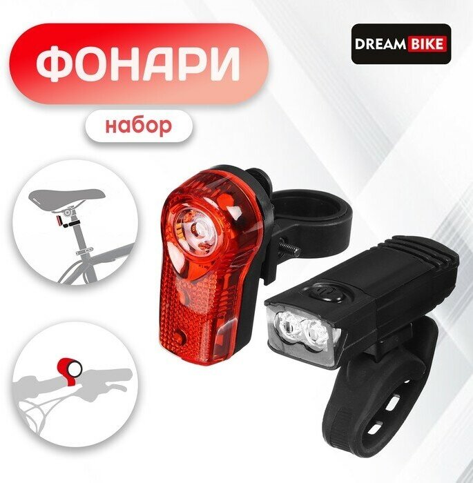 10 цен на Dream Bike Комплект велосипедных фонарей Dream Bike, JY-7045+JY-173A
