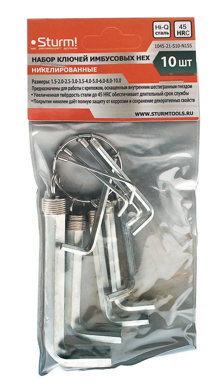 Набор ключей HEX, 10 шт, никелированные, на кольце Sturm! информация: