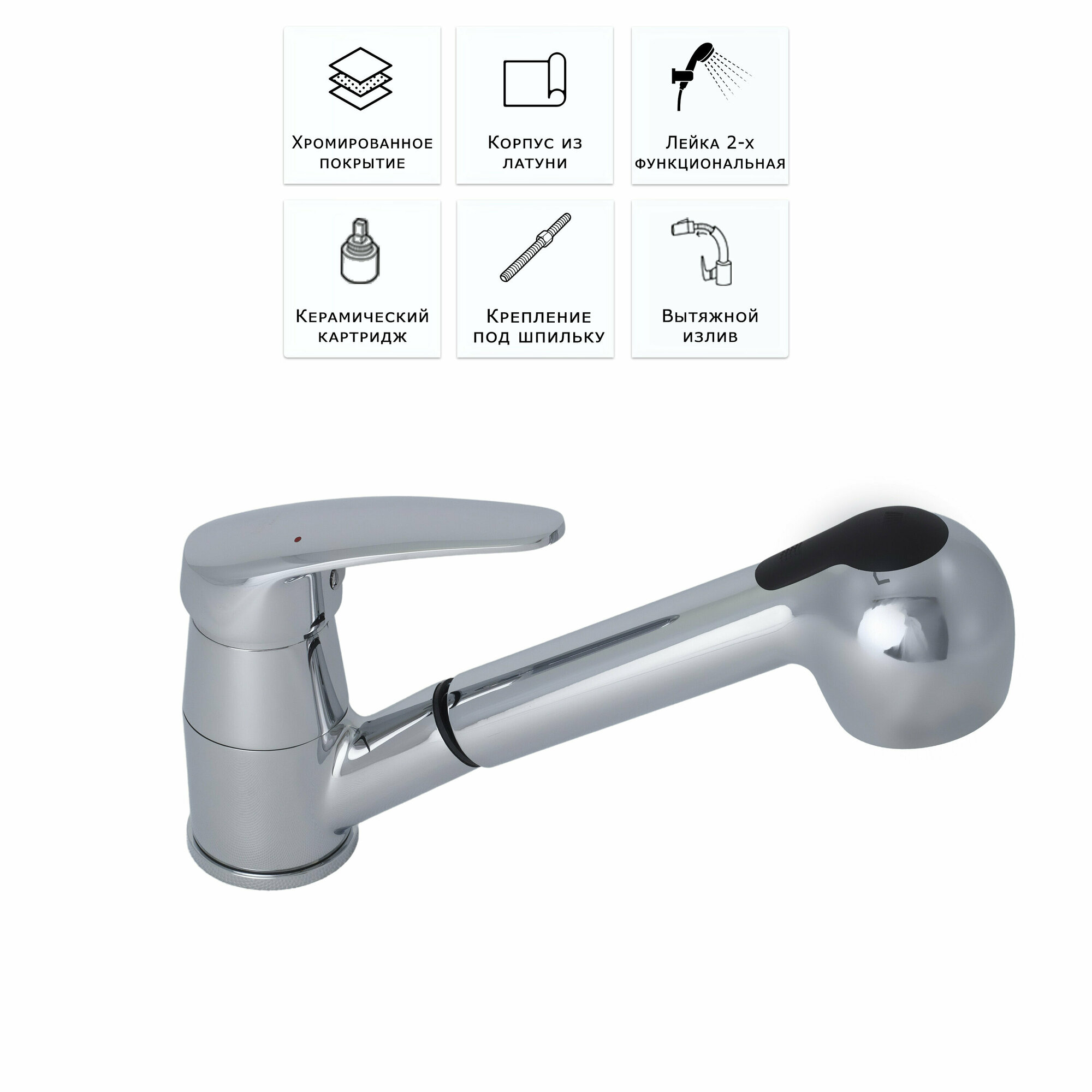 BACH / Смеситель для парикмахерской мойки выдвижным изливом и лейкой 2-х функциональной / Код 12982 информация: