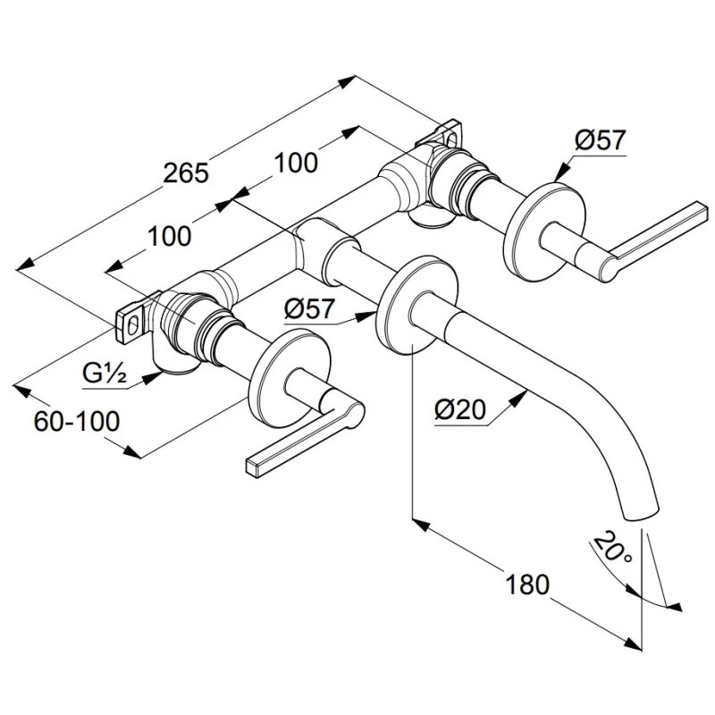 Смеситель для раковины Kludi Nova Fonte Puristic 180, настенный, на 3 отверстия, чёрный матовый 201443915 72 300 ₽