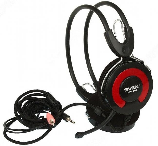 Наушники с микрофоном (гарнитура) SVEN AP-540, проводные, 2,2 м, с оголовьем, черно-красные, SV-0410540 В комплекте: 1шт.