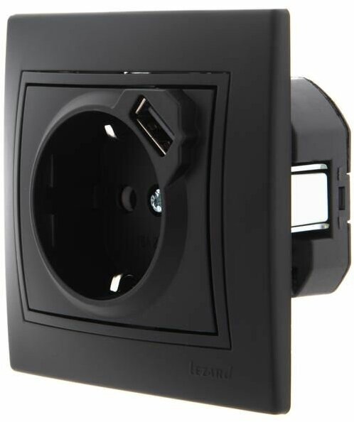 Розетка USB с рамкой Lezard MIRA 701-4242-181 скрытая установка черный бархат с заземлением один модуль USB