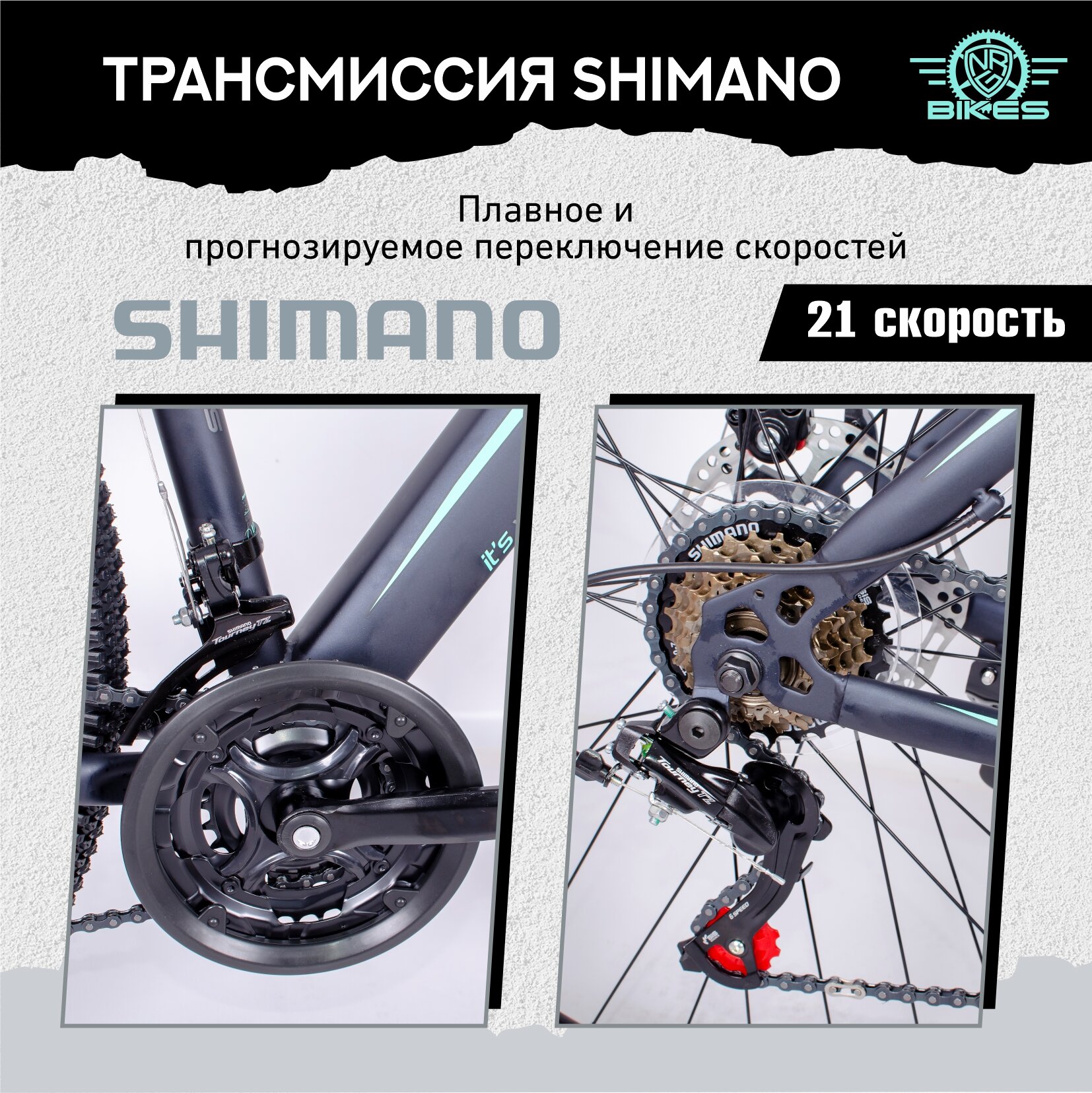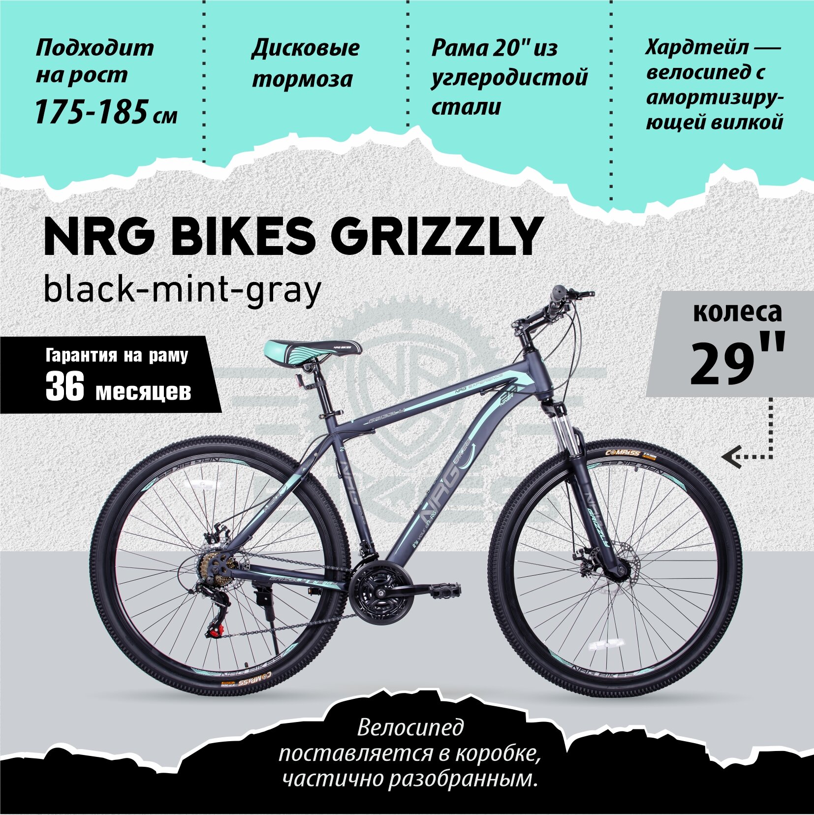 Горный Велосипед NRG Bikes GRIZZLY 29''/20'' black-mint-gray , 21 скорость информация: